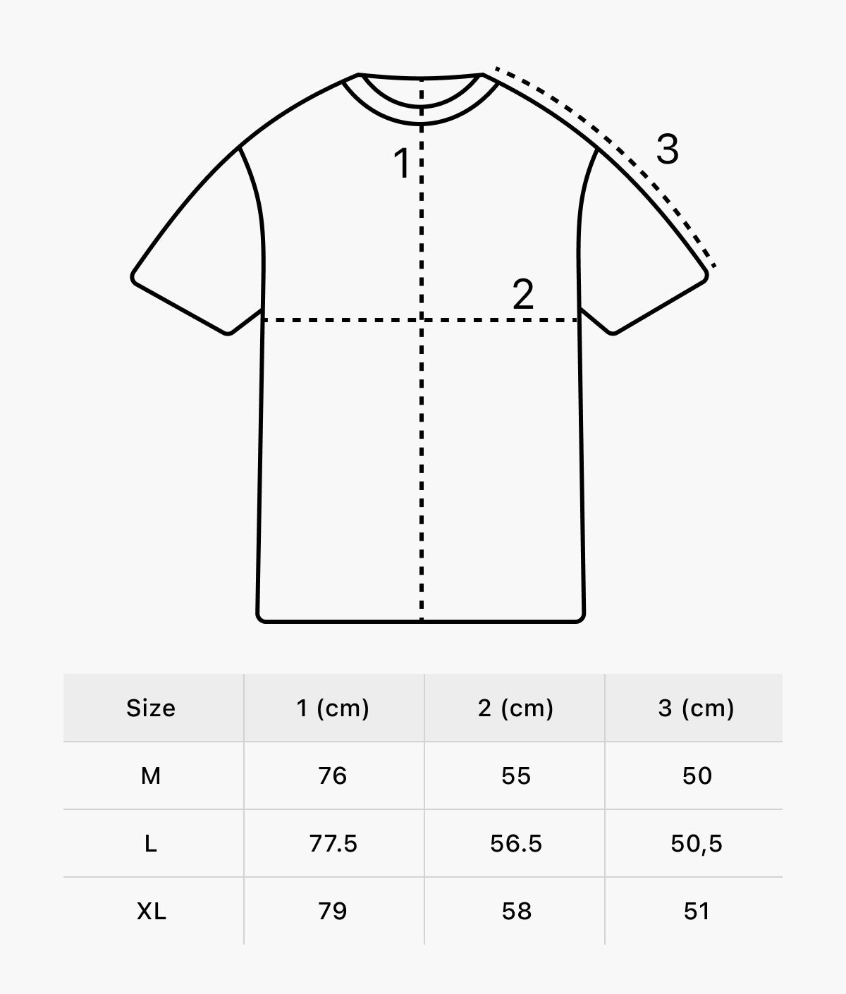 Збалансований оверсайз крій, приспущена лінія плечей, кругла горловина.